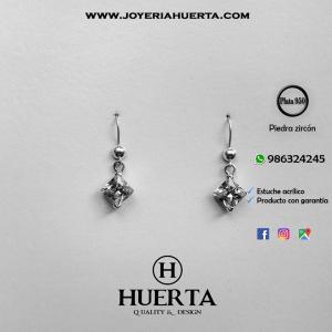 ARETES DE PLATA 950 con piedra cuadrada zircón