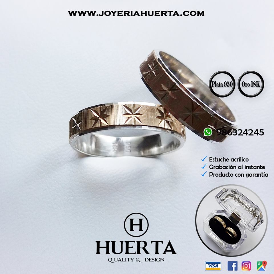 AROS DE MATRIMONIO PLATA 950 CON ORO 18K